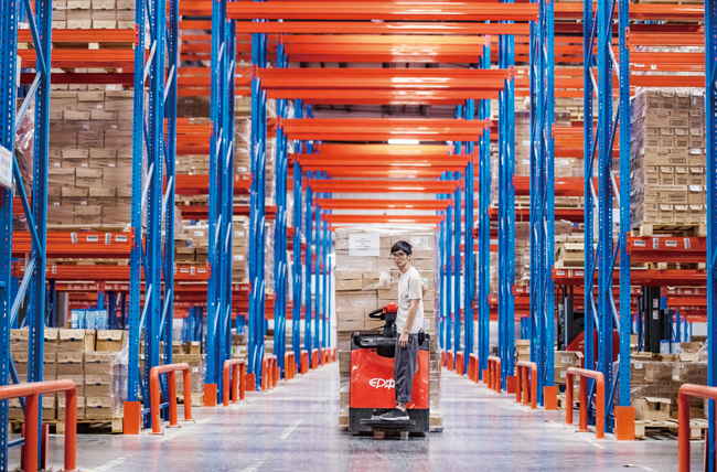 苏南早报网讯 9月5日,金义综合保税区渝欧云仓内,工作人员正在忙着分拣、打包、运送奶粉等进口母婴食品,发货给各地消费者。