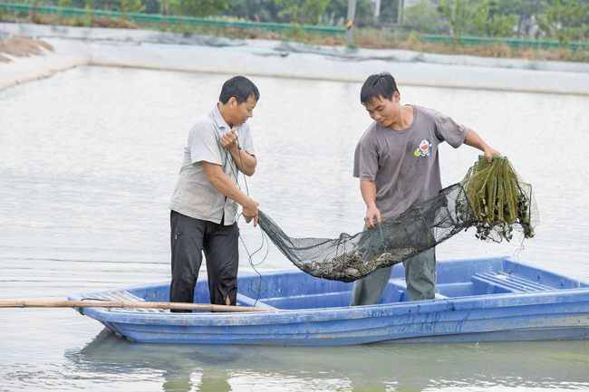 苏南早报网讯 9月15日,金华兰溪市赤溪街道某生态农业发展有限公司养殖塘内的“兰江蟹”开捕。一只只青壳白肚、金爪黄毛的“兰江蟹”被捆扎、装盒后,供应中秋节市场。