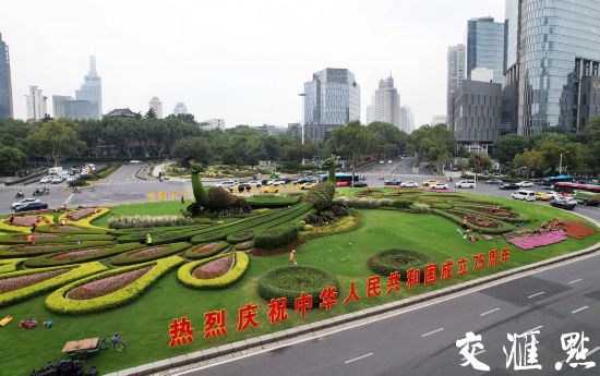 为了迎接国庆,南京鼓楼广场景观布置正在出新。