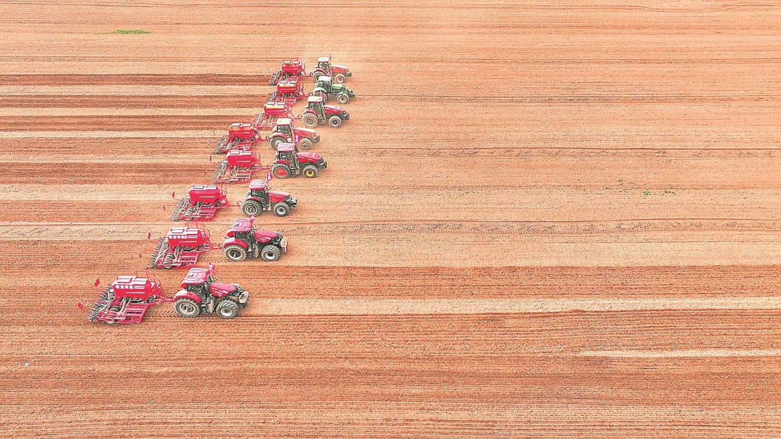 10月16日,五河县朱顶镇云美农业有限公司高标准农田里,农民驾驶农机播种小麦。当下,正是秋种关键时期,该县农民抢抓时节,翻耕土地,播种冬小麦。通讯员 李向前 摄