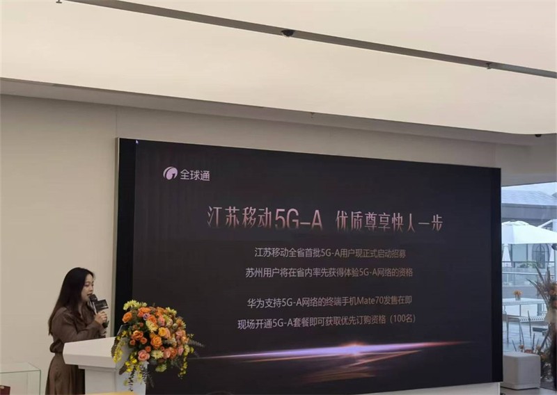 日前,苏州移动全球通&5G-A套餐在江苏苏州的华为仓街商业广场旗舰店正式发布。