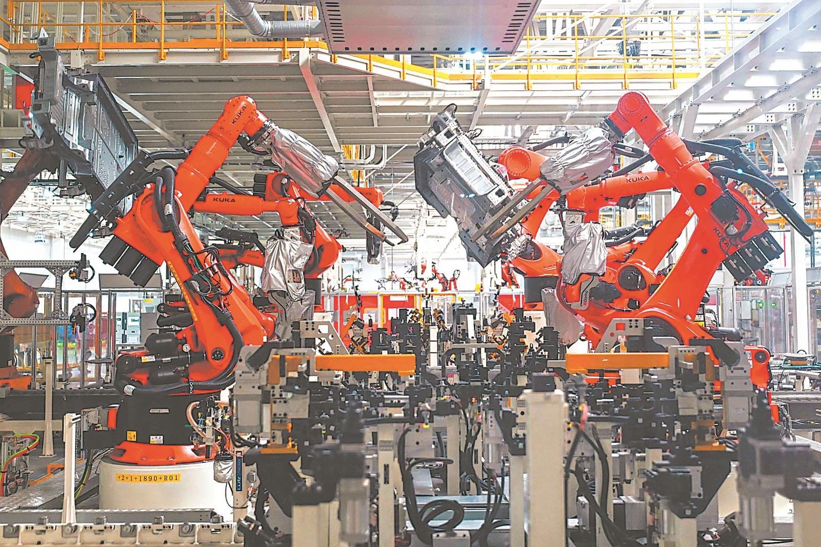 大众安徽智能电动汽车生产基地生产场景。(资料图片)记者 范柏文 摄