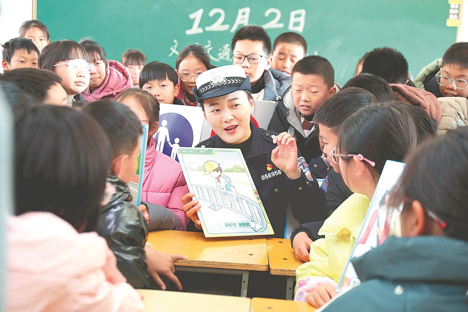 12月2日,舒城县公安局交管大队民警走进柏林乡仁峰实验学校课堂,通过安全知识讲解、互动竞答等方式,重点讲解安全出行知识和注意事项,提高学生们的交通安全意识和自我保护能力。通讯员 苏 惠 摄