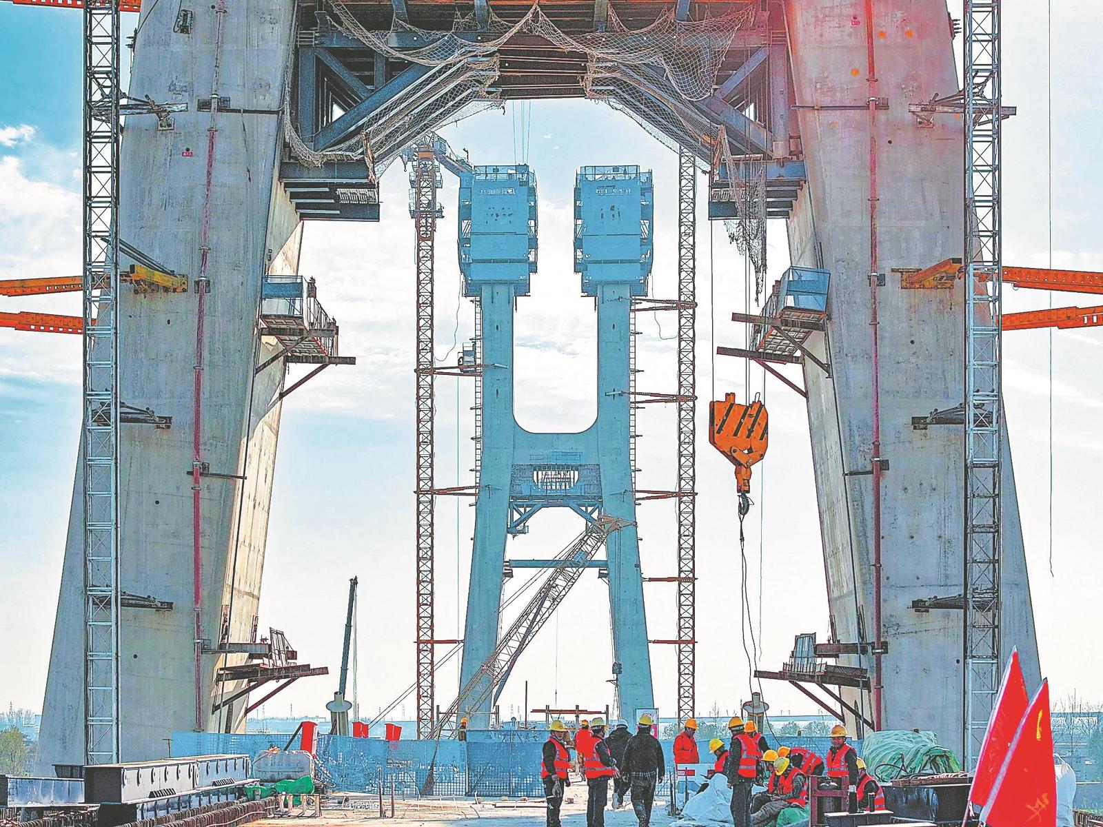 苏南早报网讯 12月8日,阜淮铁路颍河特大桥斜拉桥首个索塔顺利封顶。阜淮铁路颍河特大桥位于阜阳市颍泉区,斜拉桥为全线重点控制性工程。阜淮铁路是皖北地区城际铁路网的重要组成部分,途经亳州市利辛县、蒙城县,止于拟建淮北至宿州至蚌埠铁路双堆集站,正线全长142.5公里。建成后将推动皖北城市群连通长三角地区,是衔接陇海经济带的快速客专通道。记者 李博 摄