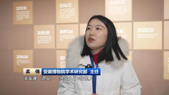 安徽博物院学术研究部 主任 孟倩:(凌家滩遗址)一共出土了6件玉人,我们这次就有4件集体展出,2件立姿以及2件坐姿的玉人,这么多玉人这是首次展出。