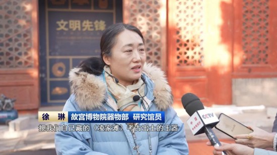 故宫博物院器物部 研究馆员 徐琳:可以说是故宫博物院是第一次把我们自己藏的(凌家滩)考古出土的玉器,第一次全景地全部地拿出来展示,这是非常难得的。最明星的(展品)就是大家知道的龟板就是刻图的玉板,1987年4号墓出土的。