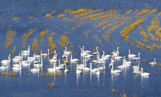 “这些年,野天鹅年年来到淮河蒙洼逗留、觅食,大约在这里大约能呆上一个月时间。野天鹅频频光临,让蒙洼湿地成为美丽的天鹅湖!”杜平说。