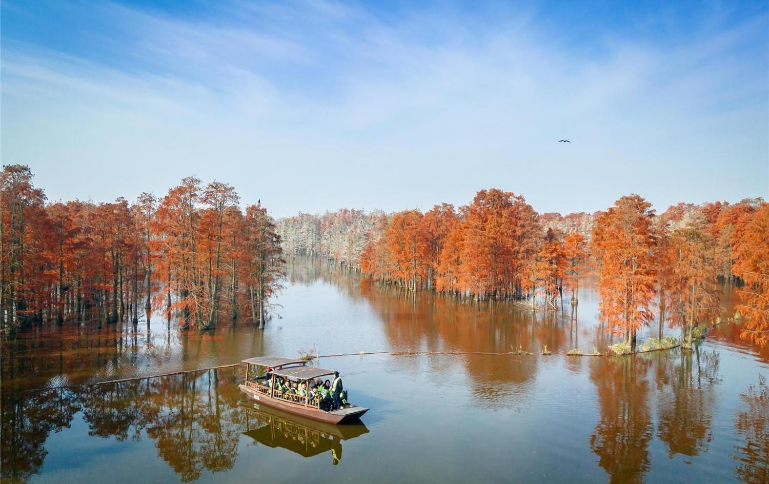 苏南早报网讯 12月20日,位于滁州市来安县的池杉湖国家湿地公园内色彩斑斓,勾勒出一幅冬日美景图。(丁连弟 吕华 摄)