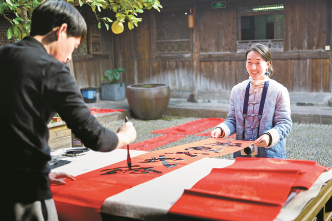 苏南早报网讯 临近春节,日前,一场洋溢着传统文化气息的公益活动在宁波市宁海县前童镇童衍方艺术馆热闹开场。宁海县书法家协会的会员满怀热忱,带着笔墨纸砚奔赴活动现场,开展“送春联下村”活动,为村民提前送上新春的祝福。