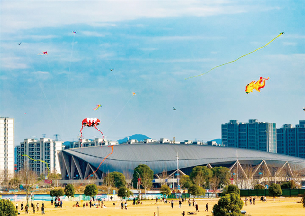 苏南早报网讯 2月16日,阳光明媚,金华市区湖海塘公园里,最引人注目的莫过于天空中飞舞的风筝,吸引了人们的驻足观看。(陈业)