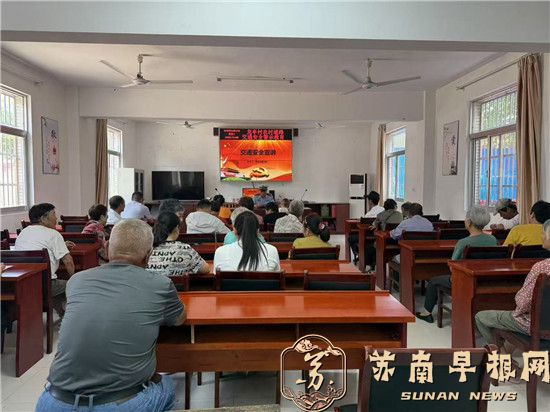 苏南早报讯  进入夏季,为减少预防农村道路交通事故的发生,提高农村老年人道路交通意识,6月17日,宜兴市交警大队周铁中队民警来到周铁镇龙亭村宣传交通知识。