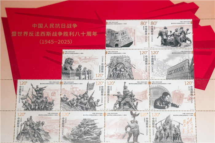 为配合此次邮票首发活动,《铭记历史·珍爱和平——纪念中国人民抗日战争暨世界反法西斯战争胜利80周年》主题邮展也于同日在上海四行仓库抗战纪念馆三楼临展厅开幕。