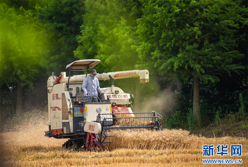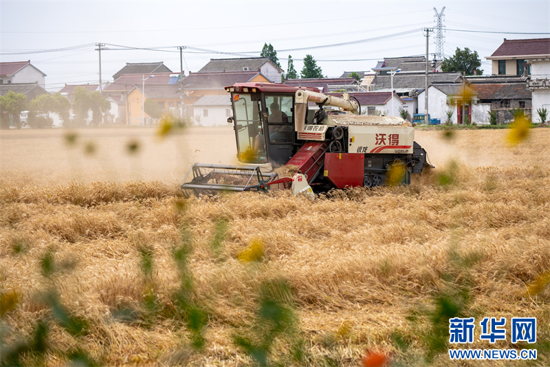 江苏兴化:小麦收获忙碌 奏响丰收乐章