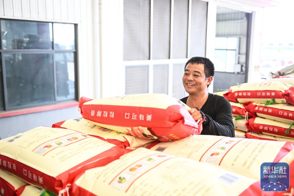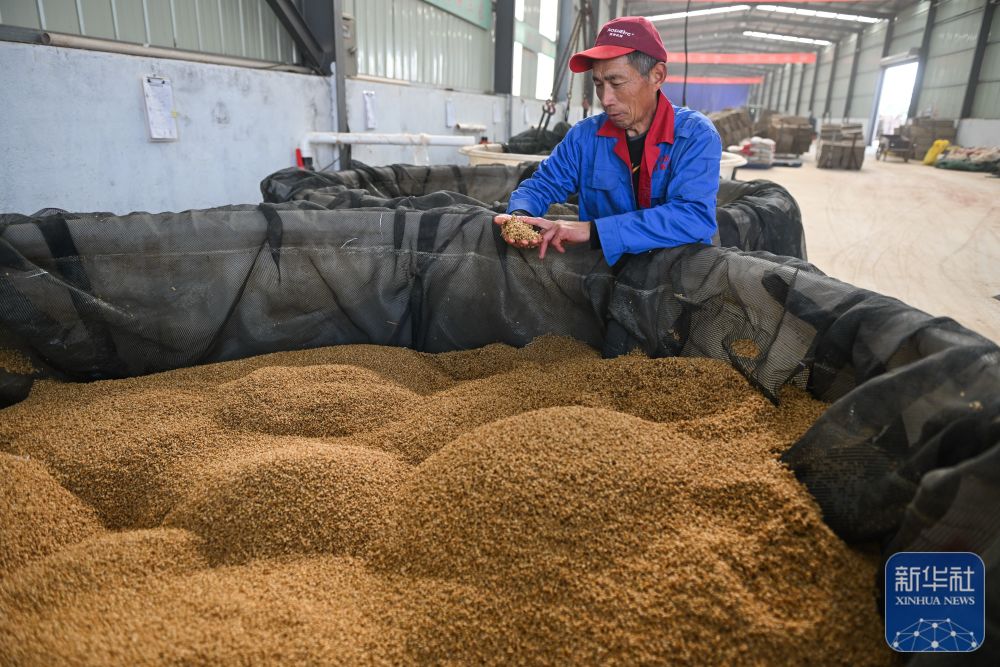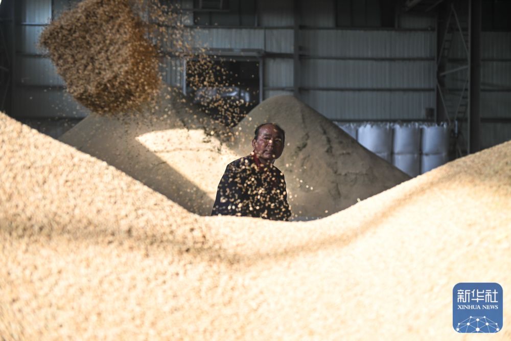 在位于射阳县的江苏必新大米集团,工人在整理稻谷(10月30日摄)。