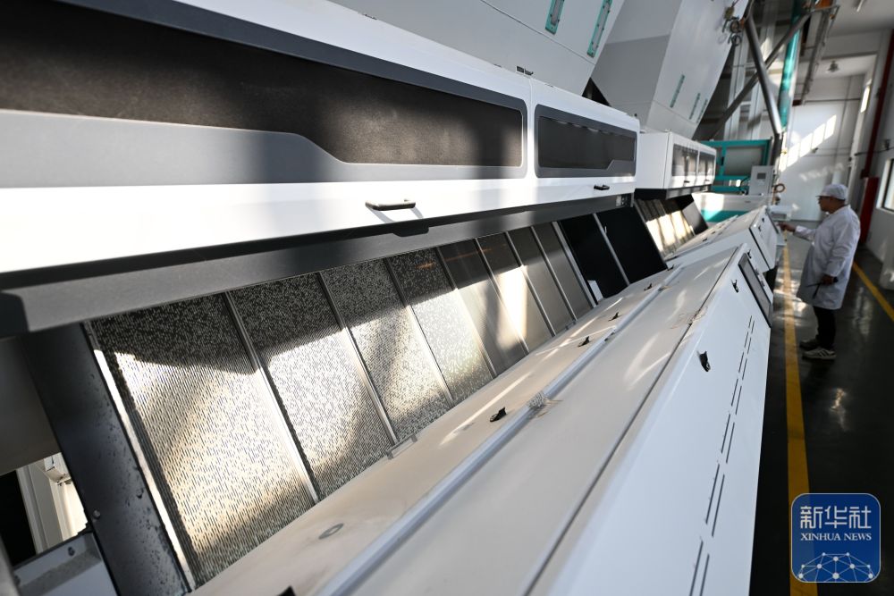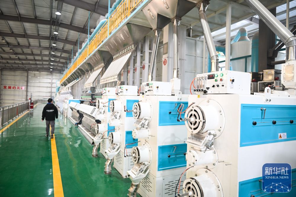 这是位于射阳县的江苏必新大米集团自动化加工车间(10月30日摄)。