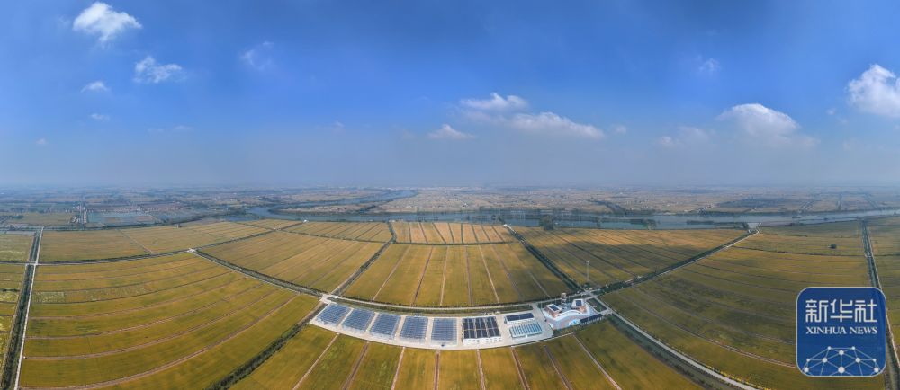 这是射阳芯谷里现代农业示范基地稻田里待收割的水稻。(10月30日摄,无人机照片)