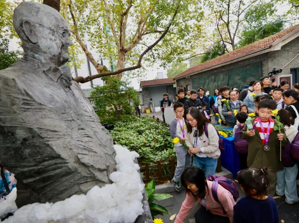 当徒步活动行至魏特琳女士雕像处,南京大屠杀幸存者刘民生的女儿、首批历史记忆传承人刘榴献上魏特琳女士生前最喜爱的菊花。她说:“当年,我的父亲刘民生在金陵女子文理学院难民收容所避难,年幼的他受到魏特琳的庇护,父亲一直怀念包括魏特琳在内的国际友人。”