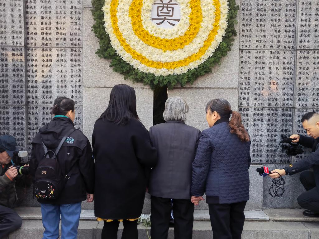 家祭仪式后,夏淑琴向刘民生、艾义英道别,互祝身体安康。离开时,她看着“哭墙”上亲人的名字说:“我已经95岁了,但我还在等,等到日本政府承认他们的罪行,向我们道歉的那一天。”(记者蒋芳、邱冰清)