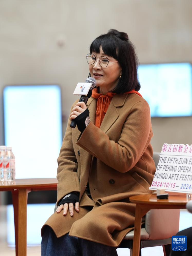 11月21日,台湾梅派京剧艺术家魏海敏在江苏紫金大剧院参加艺术分享会。 新华社发
