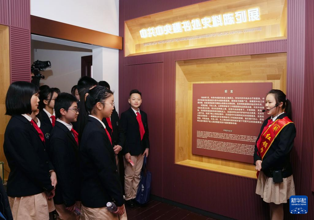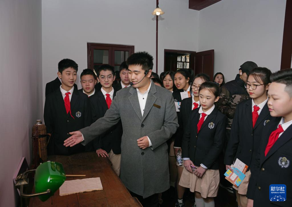 2月17日,上海市静安区教育学院附属学校的学生在中共中央秘书处机关旧址纪念馆内参观。