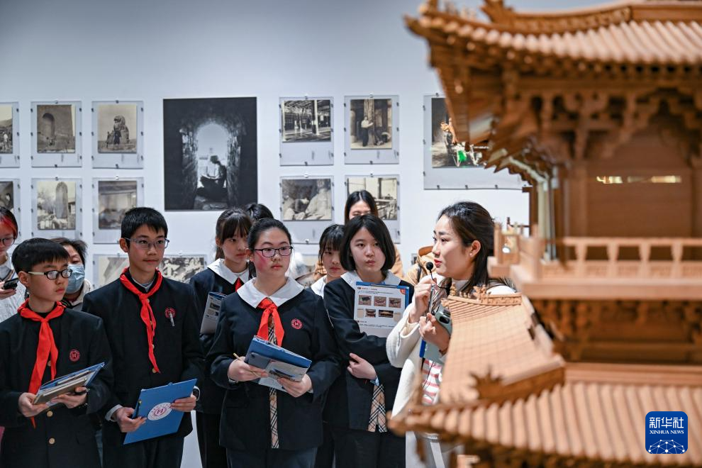 2月17日,华东师范大学第一附属初级中学的学生来到上海趣看美术馆,开启他们的“开学第一课”。学生们带着学习任务单走进“栋梁——梁思成与林徽因学术文献展”,探寻中国古建筑之美。
