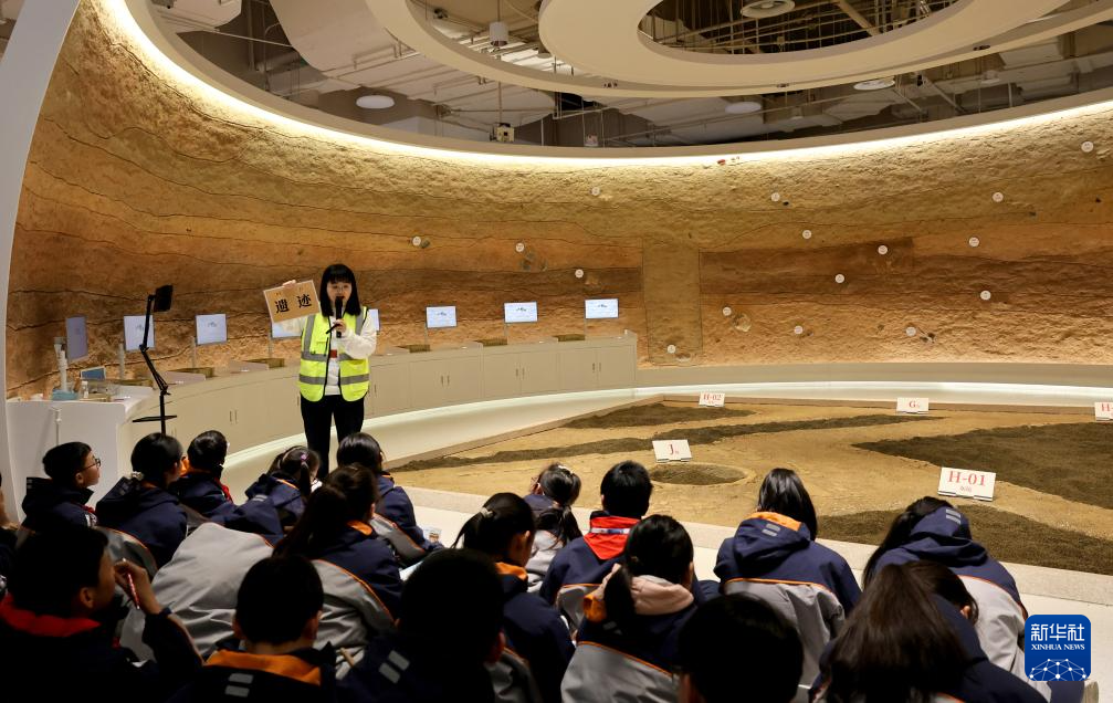 2月17日,在上海博物馆东馆,博物馆工作人员向同济大学附属澄衷中学的学生介绍田野考古知识。