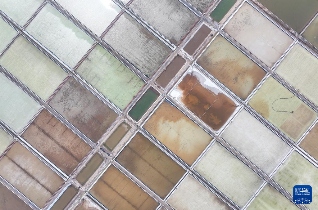 4月7日拍摄的连云港市灌西盐场盐田景象(无人机照片)。