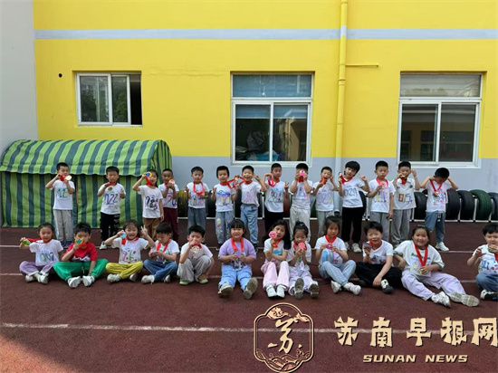 活动现场,孩子们身着园服,随着园长妈妈手中的发令气球“啪”地炸响,大家冲出起点,沿着操场的“迷你彩虹跑道”,在欢快的音乐中开启奔跑。老师们在沿途设置的“森林加油站”、“彩虹拍拍手”等趣味打卡点,为孩子们递水、鼓励。不少孩子跑到脸红扑扑仍大喊“我能行!”最终,每位坚持到终点的小选手都获得了手工制作的“小小马拉松之星”奖牌。