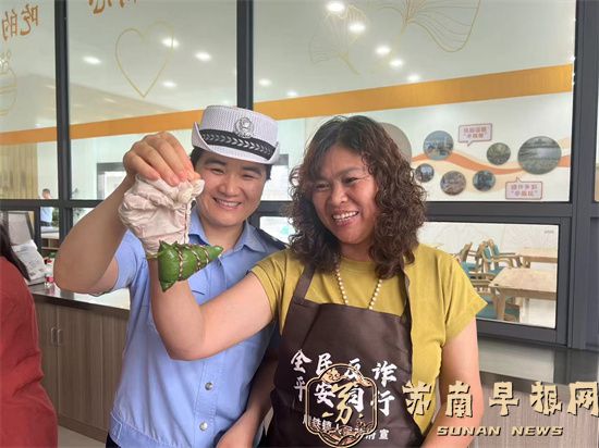 现场,还穿插了“粽情端午邻里安康"活动。交警和志愿者们将准备好的粽叶、糯米,裹成一个个粽子,送到老人们手中。杭德洪老年人开心地说:“我既听了交通安全讲座,又感受到社区的温暖”。
