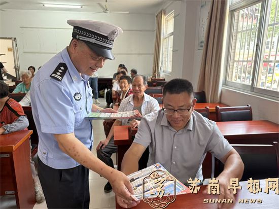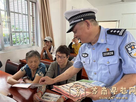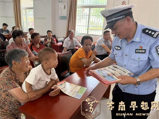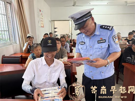 苏南早报讯 进入夏季,为减少预防农村道路交通事故的发生,提高农村老年人道路交通意识,6月17日,宜兴市交警大队周铁中队民警来到周铁镇龙亭村宣传交通知识。