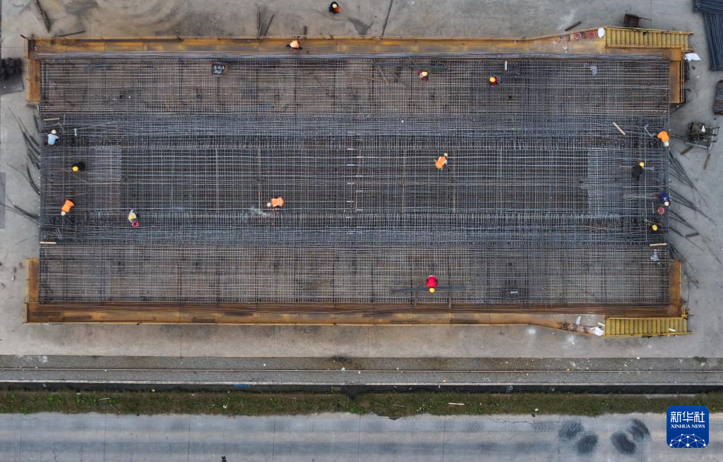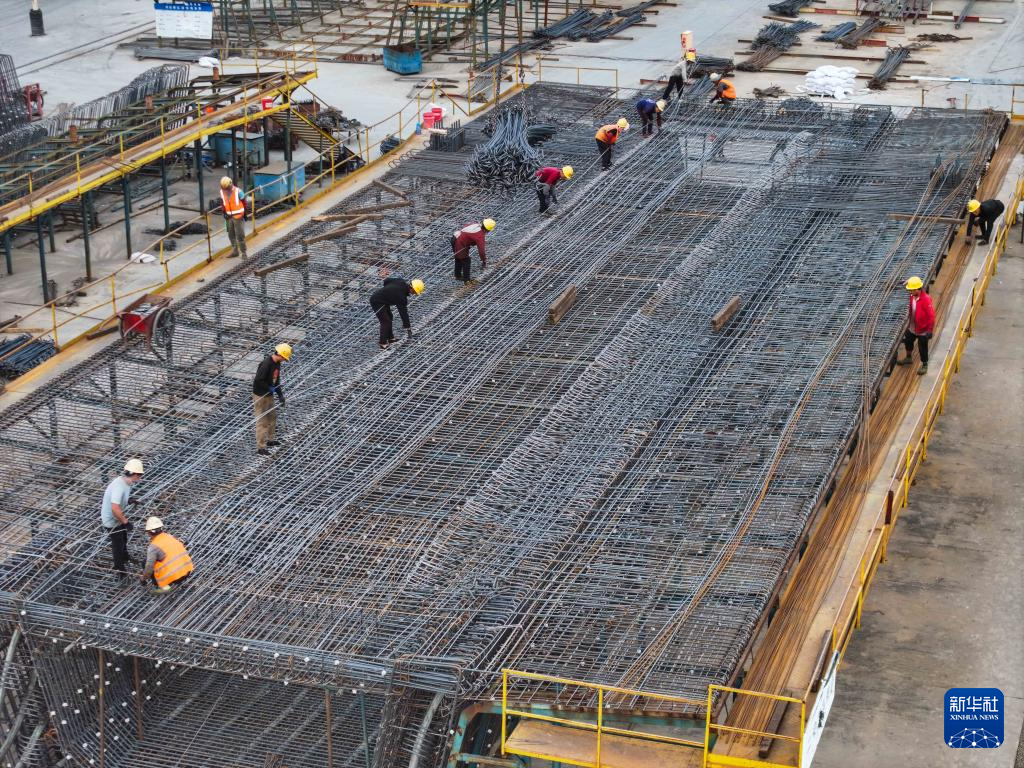 10月27日,工人在中铁十一局沪渝蓉高铁沪宁段搬经制梁场作业(无人机照片)。