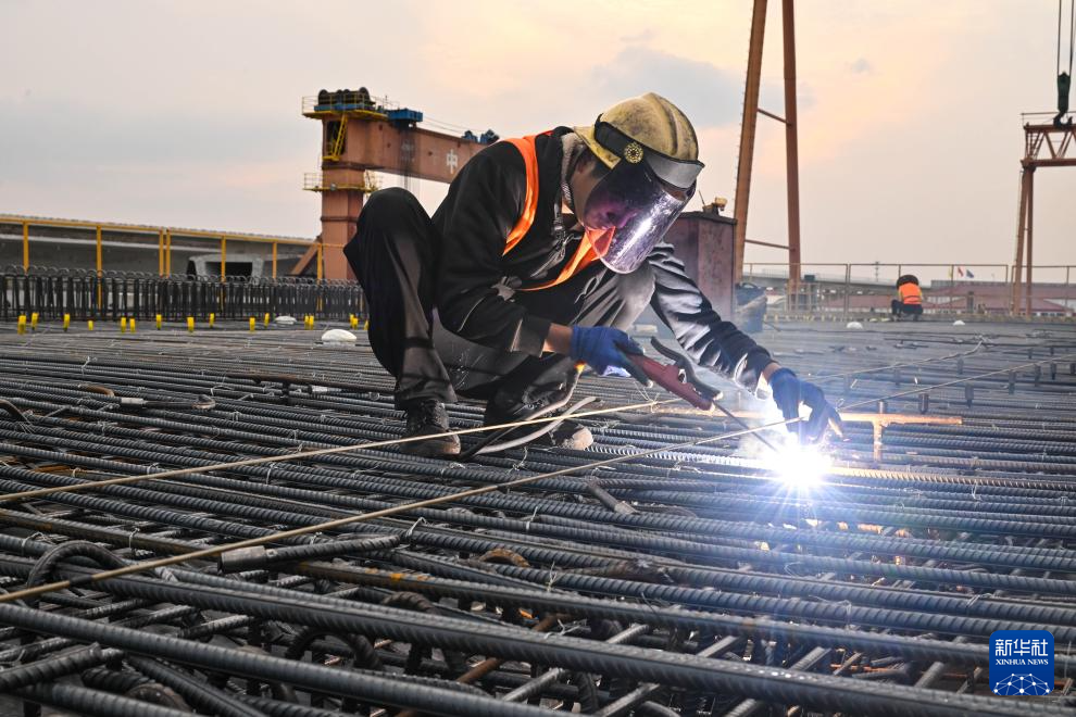 10月27日,工人在中铁十一局沪渝蓉高铁沪宁段搬经制梁场作业。