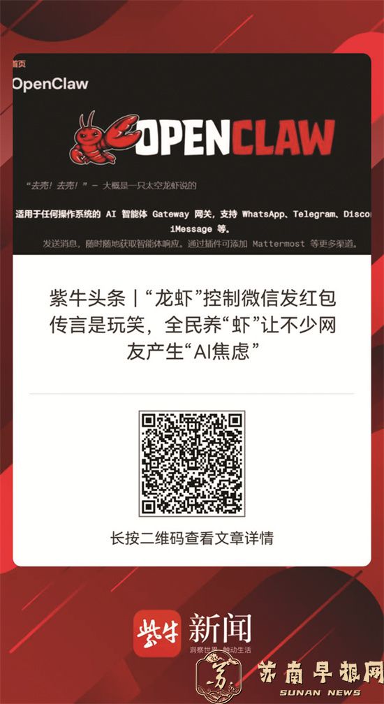AI行业从业者王先生告诉扬子晚报记者,针对目前市面上的“龙虾”类工具(OpenClaw、QClaw等),从官方正常使用场景来看,其权限均有明确限制,网传“可控制微信直接发送红包”的说法并不成立,但也不排除存在第三方技术篡改、被木马病毒恶意攻击等潜在风险。
