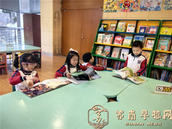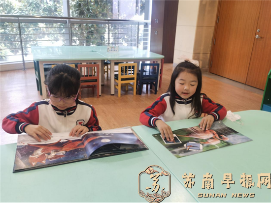 “要保持安静,爱护图书哟!”在老师的引导下,孩子们瞪着一双双好奇的眼睛,迫不及待地选择喜爱的图书,有的独自安静阅读,有的与好朋友共读一本书,有的轻声交流着,大家徜徉在书的海洋里,尽情体验阅读的快乐。