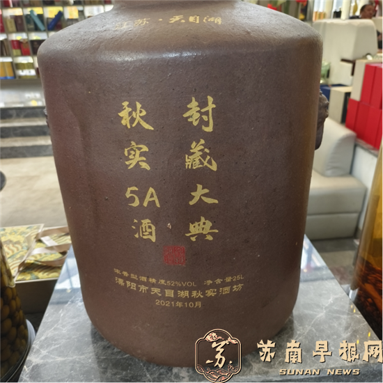 据了解,茅台和五粮液等国内顶尖白酒品牌发酵时间均保证在一定的时间。而国内很多省地方名酒,发酵时间仅三个月,最长时间也就180天(半年)左右。周友智特别介绍说,秋实酒坊建立了恒温25度的地窖和储存间,发酵时间确保一年以上。发酵时间越长,酒曲会越纯,度数也越高,酒体会更丰满,酒也会越香。天目湖秋实酒坊酿制的天目湖白茶酒,属于和茅台一样的酱香型,口味纯正,兼有白茶淡淡的清香,酒精度数为52度。