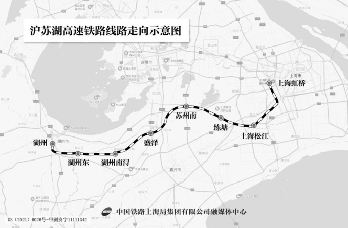 车站名称为:上海虹桥(既有)、上海松江、练塘、苏州南、盛泽、湖州南浔、湖州东、湖州(既有),其中上海松江站为既有松江南站更名而来。沪苏湖高铁起自上海虹桥站,途经江苏省苏州市,终至浙江省湖州市。正线全长约163.8公里,设计时速350公里,连通上海、苏州、湖州等长三角重点城市。(笪越)