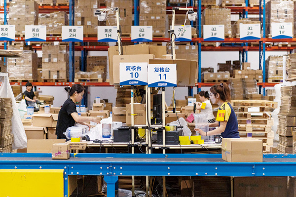 苏南早报网讯 4月20日,在金华金义综合保税区云仓跨境华东中心仓内,工人正对跨境商品进行分拣、包装,准备发往全国各地。金义综合保税区自2017年6月封关运营以来,积极发展跨境电商产业,进口商品快递发货量居全国前列。(胡肖飞)