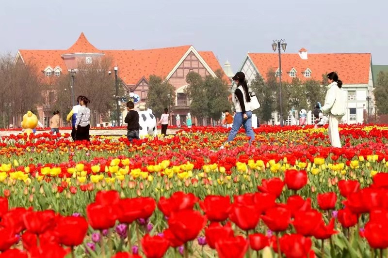 “伊园的郁金香开了。”连日来,这样报春的信息和一幅幅美图霸屏了江苏省连云港市灌云县很多网友的社交平台。来到位于新G204川星村段东侧的伊园,这里的樱花、桃花、紫叶李、玉兰花、二月兰正相继开放,尤其是20万株郁金香竞相绽放,正进入赏花期。“高铁、花海、建筑、风车”这些具有童话色彩的元素吸引了各地游客,他们沉浸在春色里,一睹醉美乡村如诗如画的美好春光。