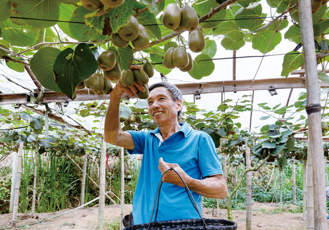 苏南早报网讯 9月3日,在金华市武义县柳城畲族镇新塘村,高山猕猴桃种植户周仁法正在采摘红心猕猴桃。据了解,目前柳城畲族镇大力发展高山猕猴桃种植业,全镇猕猴桃种植规模超1000亩。(韩东儒)