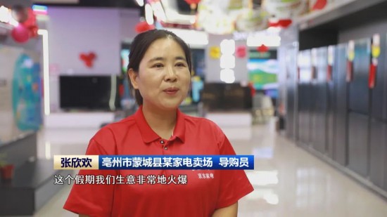 这个假期,受消费补贴政策拉动,家电卖场迎来销售旺季。在亳州市蒙城县的这家家电卖场,导购员张欣欢这两天一直忙着给一拨又一拨顾客,详细介绍补贴政策及购买流程,签单、补货……一天下来,在工作区域她就能走上2万多步。