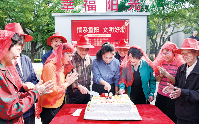 苏南早报网讯 10月11日,“情系重阳 文明好潮”邻里嘉年华活动在金华开发区三江街道阳光社区举行。活动中还举办金婚庆典,让老人们回味往日的甜蜜。