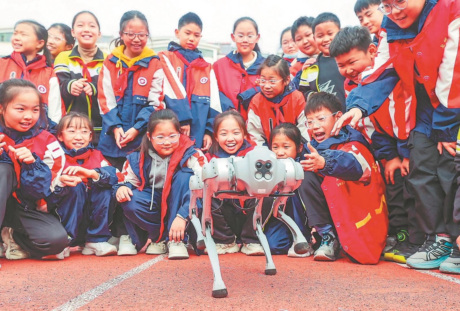 苏南早报网讯 11月11日,淮北市第五实验小学校园科技节活动上,同学们在观看“机器狗”表演。科技节上,通过科普讲解、互动体验等方式,让学生零距离感受科技的魅力。通讯员 冯树风 王心杰 摄