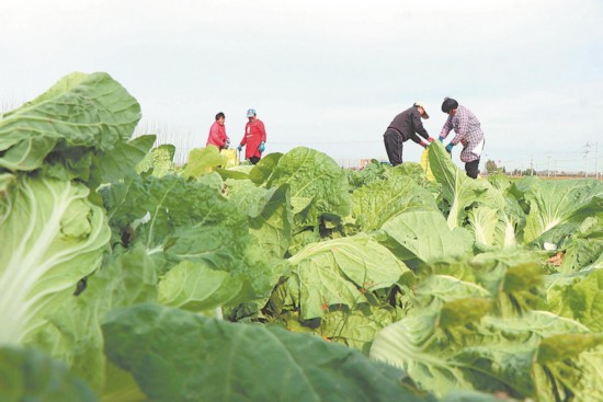 11月26日,亳州市谯城区牛集镇娃娃菜种植基地,工人在采摘装运娃娃菜,陆续发往山东、江苏等地。通讯员 武清海 摄