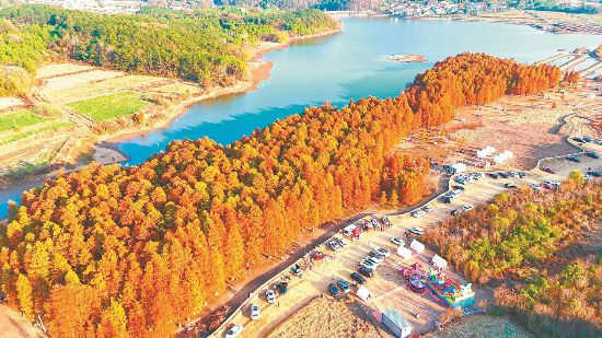 苏南早报网讯 12月1日,怀宁县雷埠乡金鸡岭水库红杉林各种颜色交织,令前来观赏红杉林湿地景观的游客赞叹不已。当地利用金鸡岭水库、红杉林景区等旅游资源,倾力打造旅游、观光、垂钓、休闲、养生为一体的旅游综合体。通讯员 檀志扬 殷 俊 摄
