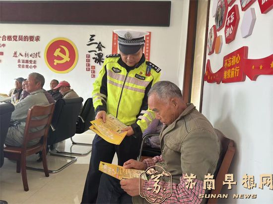 4日,该中队民警来到周铁镇洋溪村,组织村民观看发生在辖区近期的交通事故案例,讲解分析原由,向村民发放交通法规宣传资料,提醒大家遵守电动二三四轮管理规定,正确使用头盔,步行出行,骑车出行,乘车出行等注意事项,提示大家上路靠右侧通行,注意观察,确保安全。民警还让大家识别简单的交通标志,标线,并开展互助提问活动。