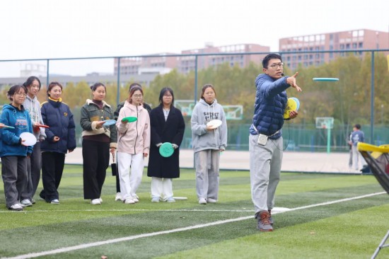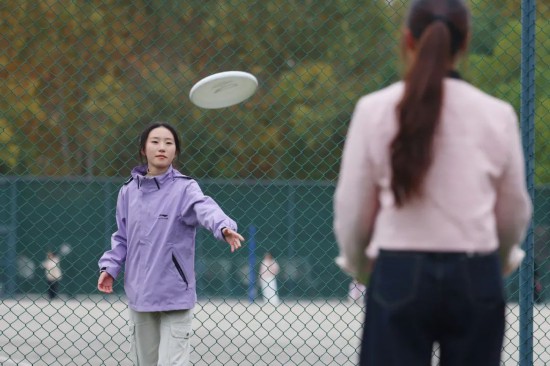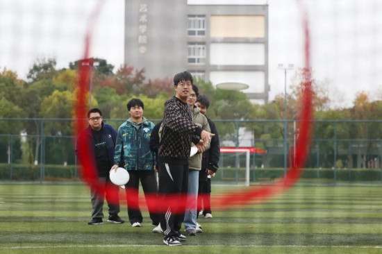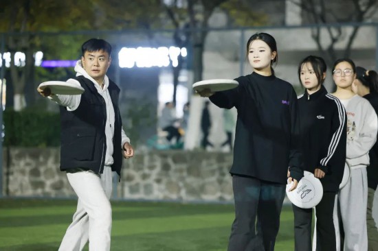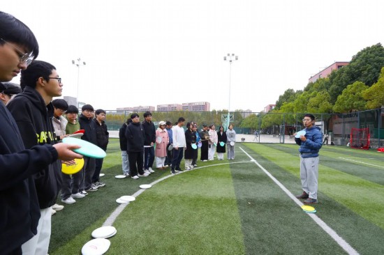 “我觉得飞盘挺好玩的。”23级大数据与人工智能学院软件工程二班的马浚凯从大一就开始学习飞盘课程了。马浚凯说:“飞盘是一个很轻松简单的运动,老师上课很有耐心,讲得也非常详细,平时我也会通过线下的体育课和线上的网络视频来提升我的飞盘技术。”在老师的帮助下,马浚凯掌握了正、反收手掷盘,掷准、掷远和比赛的一些规则。