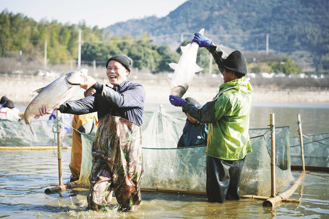 苏南早报网讯 12月29日上午,绍兴市上虞区永和镇举办首届“鱼跃冬捕”麻岙湖捕鱼节,现场一派“鱼跃人欢”的丰收景象。(魏新宇)