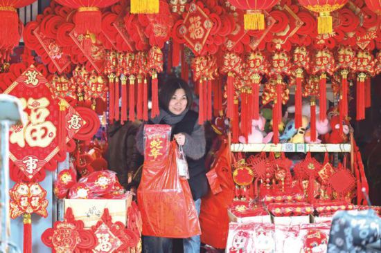 苏南早报网讯 1月2日,在嘉兴市区秀州路小商品批发市场的一些商铺,灯笼、福字、对联等年俗用品高挂,烘托出浓浓的喜庆氛围,不少市民前来选购,把新年“福气”带回家。(俞中岳)