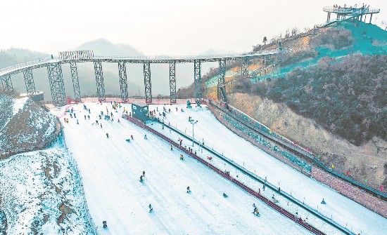 1月上旬,记者来到位于大别山腹地的六安市金寨县油坊店乡莲花山滑雪场。虽不是周末,游客依旧络绎不绝。这个雪场占地面积约6.6万平方米,可同时容纳约3000人滑雪。除练习道、初级道和中级道外,还有雪哈哈冰雪世界,以满足各类游客滑雪体验、戏雪耍雪、专业竞技、研学旅游等多种需求。据介绍,莲花山滑雪场雪期长达3个月,是金寨县冬季旅游的一张新名片,去年接待了4万余名游客,今冬雪季门票开售截至当日,预售票5.26万张,销售额达1069万元。