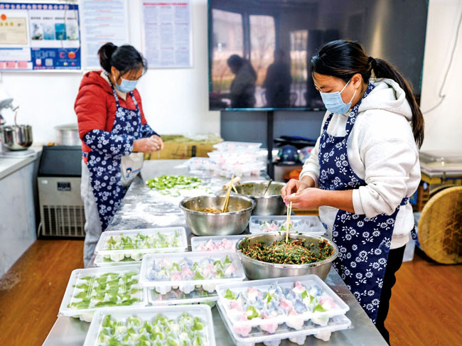 “来到共富工坊,工作环境干净又温暖,在家门口就能拿到工资,还能照顾老人和孩子。”王丽君一边包饺子,一边开心地说。